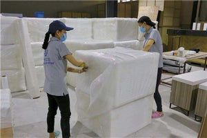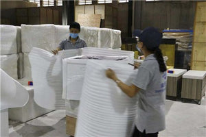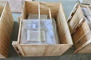 1. Stretch Wrap —— 2. Corner Protector —— 2. Corner Protector Detail —— 3. Foam Wrap —— 4. Bubble Wrap —— 5. Plywood Box with Pallet
